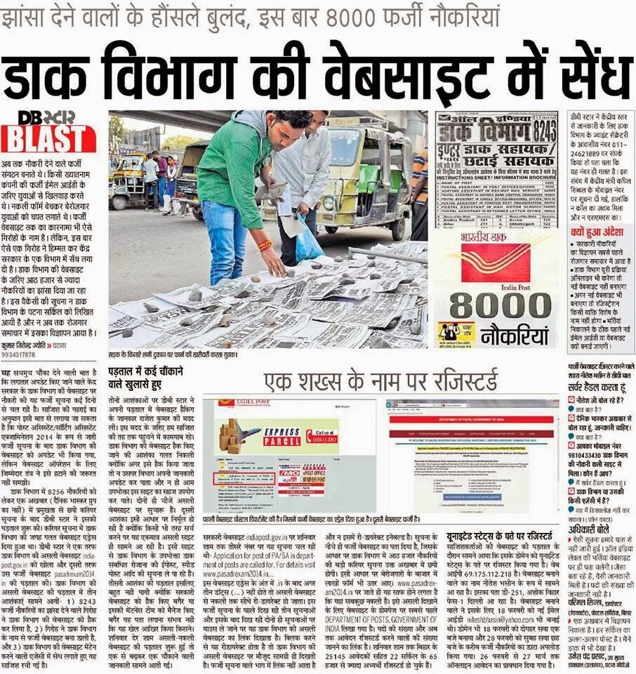 હાલમાં પોસ્ટ વિભાગ દ્વારા પોસ્ટલ આસીસ્ટન્ટ અને શોર્ટીંગ આસીસ્ટન્ટની લગભગ 8000 જગ્યાઓ માટે ભરતી બહાર પાડવામાં આવી છે. જો કે આ ભરતી પોસ્ટ વિભાગની ઓફિશીયલ સાઇટ પર જ છે પરંતુ આજે જ એક રાષ્ટ્રીય સમાચાર પત્રમાં એવો ઘટસ્ફોટ કરવામાં આવ્યો છે કે આ ભરતી વિશે પોસ્ટના કોઇ જ અધિકારીઓ પાસે કોઇ વિગત નથી અને ઉપર સુધી કોઇને આ બાબતે કંઇ જ ખબર નથી!!! તો પછી ભરતી કોણે બહાર પાડી? ન્યૂઝપેપરના લખાણ મુજબ જ જોવા જઇએ તો પોસ્ટ વિભાગની સાઇટ પરથી એક અન્ય વેબસાઇટની લિંક આપવામાં આવી છે જેનું ડોમેઇન એક્સ્ટેન્શન .in છે એટલે કે આ ડોમેઇન સરકારી નથી, પ્રાઇવેટ છે. ભરતી પ્રક્રિયા માટે જે કોઇ ઇમેઇલ એડ્રેસનો ઉલ્લેખ છે તે પણ પ્રાઇવેટ છે. ન્યૂઝપેપરના રીપોર્ટ મુજબ પોસ્ટ ડિપાર્ટમેન્ટે આ બાબતની તપાસ અમુક આઇ.ટી.ના તજજ્ઞોને સોંપી દીધી છે અને ટૂંક સમયમાં હકીકત બહાર આવી જશે... બસ ? વાત પુરી ??? જો અહીથી વાત પુરી થતી હોય તો લાખો બેરોજગાર ઉમેદવારોનું શું? તેઓએ બેન્કમાં જે રૂ.100 ફી ભરી તેનું શું ???